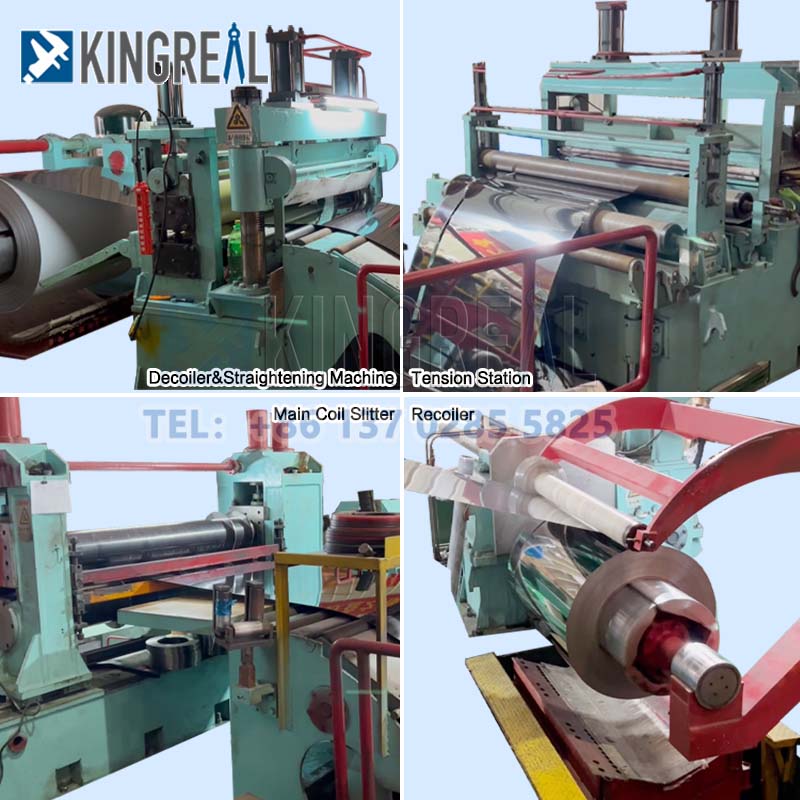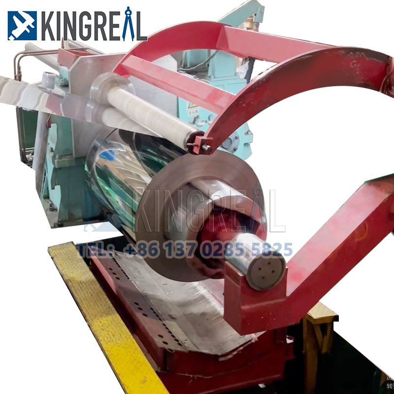 Kingreal Slitter Slitter Slitter Slitting Mesin direka untuk membahagikan bahan-bahan yang berbeza seperti gegelung keluli yang digulung sejuk, gegelung keluli yang digulung panas, gegelung keluli tergalvani, gegelung keluli silikon, gegelung keluli tahan karat, gegelung aluminium, dan lain-lain.