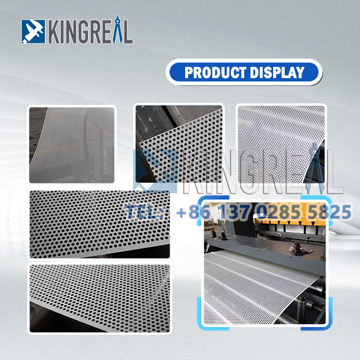 KingReal Steel Slitter menawarkan penyelesaian mesin membuat logam lengkap yang membantu pelanggan sepenuhnya mengautomasikan perforasi gegelung logam, menghasilkan gegelung berlubang, lembaran berlubang, dan juga panel siling berlubang. Bahan logam berlubang ini menjalani pemprosesan sekunder untuk membuat produk siap seperti dulang roti, skrin penapis, muffler motosikal, skrin, pagar, dan panel dinding, yang digunakan dalam pelbagai aplikasi.